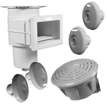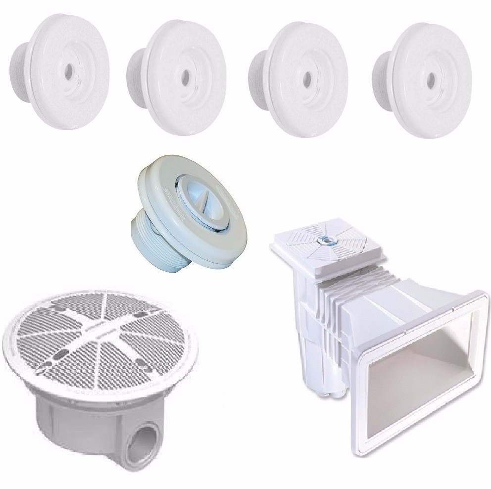 Dispositivos de retorno, aspiração, nível (ladrão ), ralo de fundo, skimmer ( coadeira ), saídas de hidromassagem, pontos para aquecimento e iluminação.