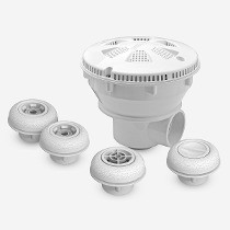 Assim como o dispositivo de aspiração, o dispositivo de retorno também possui função importante na construção de uma piscina, haja visto que por meio dele é devolvido à piscina a água já processada no sistema filtrante, além de produzir um fluxo d água em direção à coadeira (Skimmer) e ao dreno de fundo ou anti turbilhão, promovendo a movimentação equalizada da água, contribuindo em sua melhor oxigenação, e ainda tendo o papel de homogeneização; ou seja, distribuição uniforme da mistura dos produtos químicos do tratamento da água da piscina.